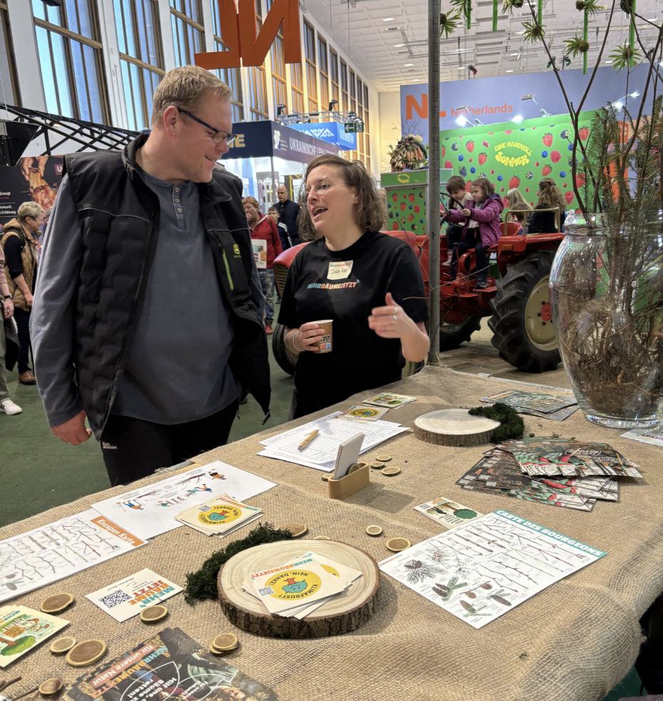 Die Grüne Woche wird 100 Jahre alt – und Mehr Bäume Jetzt feierte mit. Wir konnten uns dem niederländischen Pavillon anschließen, an einem wunderbaren Standort ganz in der Nähe des Eingangs. Zehntausende Menschen gingen innerhalb einer Woche an unserem Stand vorbei.